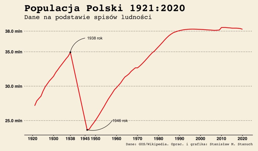 Na podstawie spisów ludności populacja Polski w latach 1938-46 zmniejszyła się o 10 000 000.